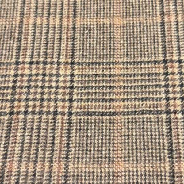 S130 | Diseño: Príncipe de Gales con cuadro de ventana | Color: Café | Composición: 100% lana | Peso: 260-270 gr/mt