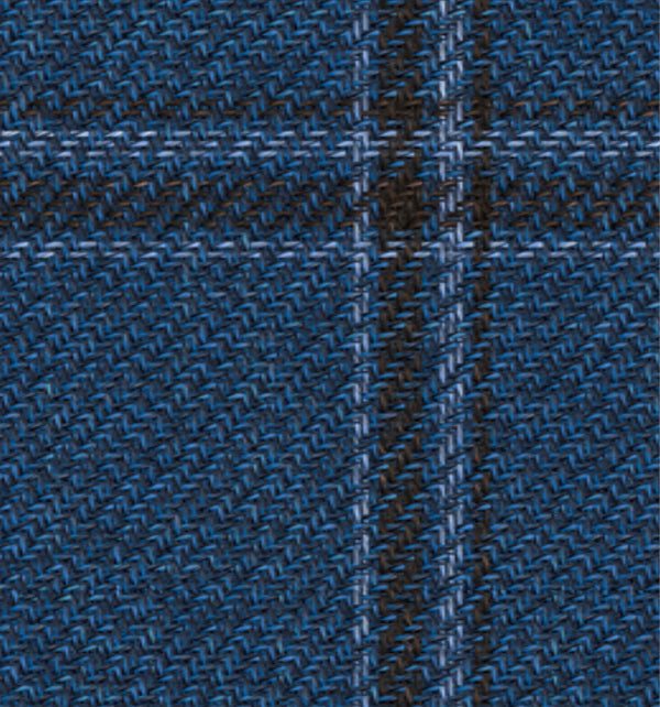 Color: Azul | Diseño: Príncipe de Gales con cuadro de ventana | Composición: 71% Lana 15% Seda 14% Lino | Peso: 250 g/m²