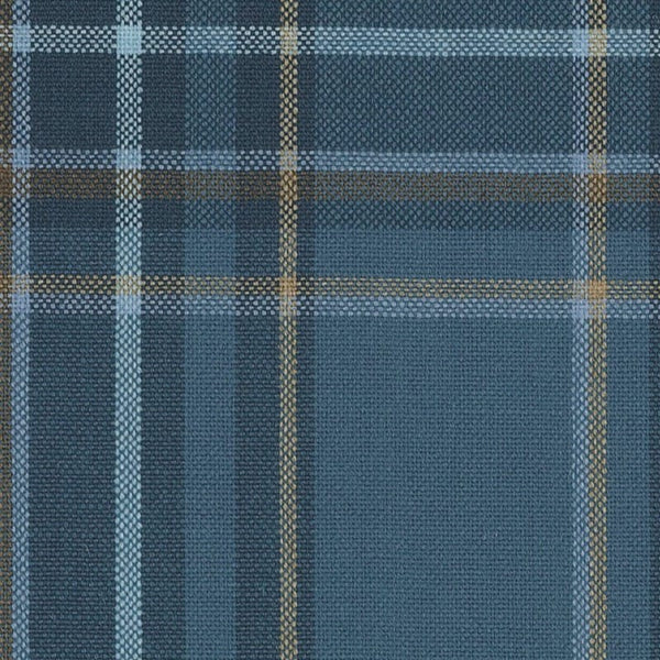 Diseño: mid blue/mustard unbalanced tartan check | Composición: 100% Lana | Peso: 250gm 8oz
