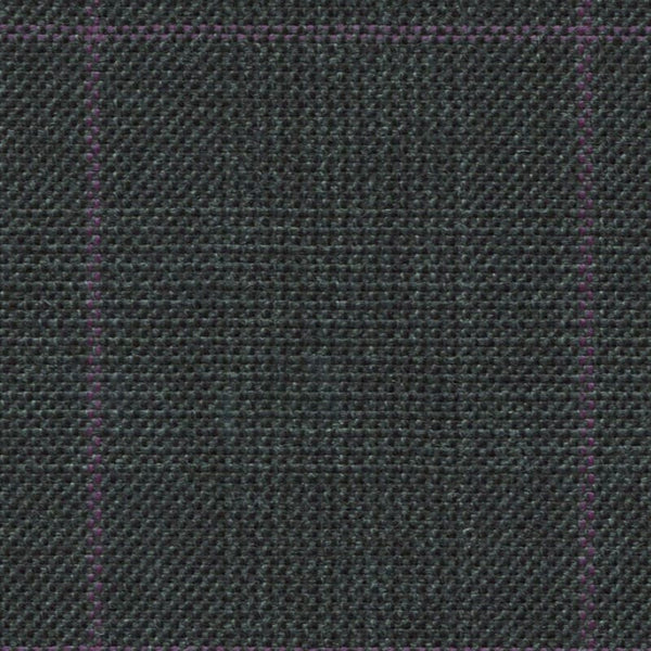 Diseño: charcoal split matt glen check (plaid) with purple windowpane | Composición: 100% Lana | Peso: 420gm 13.5oz